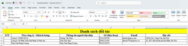 • STT: Số thứ tự của đối tác trong danh sách.