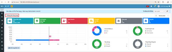 Dashboard là màn hình tổng quan của phần mềm WorkOne, giúp ban lãnh đạo và người quản lý nắm bắt nhanh tình hình nhân sự, chuyên cần, lịch họp và các hoạt động quan trọng trong cơ quan, tổ chức và doanh nghiệp.