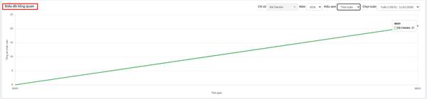 Hiển thị các chỉ số checkin, tổng nhân viên… theo thời gian. Người dùng có thể lọc theo chỉ số, năm, kiểu xem (cả năm, theo tháng, theo tuần và linh hoạt).