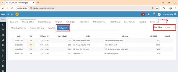 Giờ OT: Bao gồm OT ngày thường, Chủ nhật và ngày lễ.