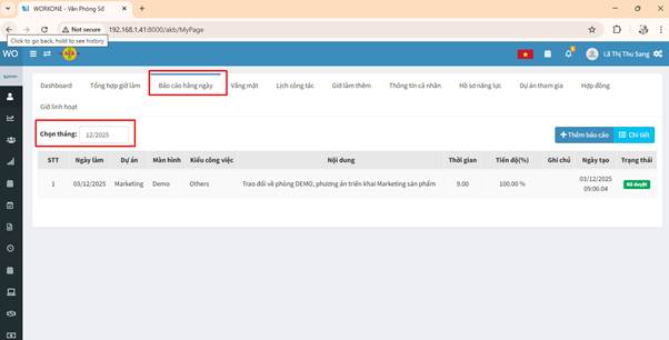 3. Báo cáo hàng ngày