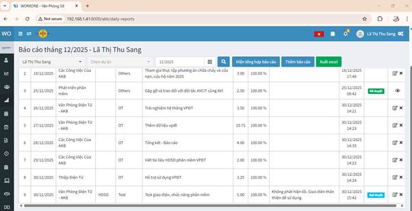 • Hệ thống tự động cập nhật dữ liệu chấm công tương ứng với tháng đã chọn.