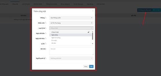 • Lý do vắng mặt và phương thức chấm công