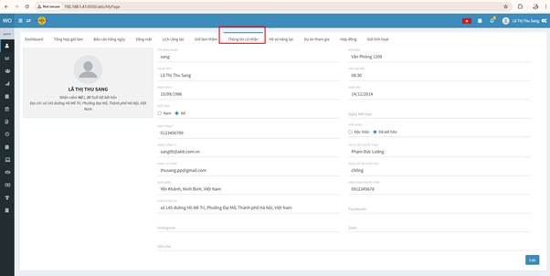 Màn hình này cho phép nhân viên xem và cập nhật các thông tin cơ bản, thông tin liên lạc và thông tin gia đình trên hệ thống.