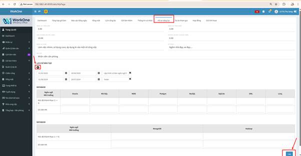 Thông tin năng lực: Cập nhật các chỉ số về năng lực ngoại ngữ (Tiếng Anh, Tiếng Nhật), số năm kinh nghiệm và các năng lực khác.
