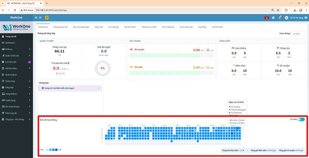 Biểu đồ hoạt động thể hiện trực quan tình hình làm việc của cá nhân, giúp người dùng dễ dàng theo dõi và đánh giá hiệu suất.