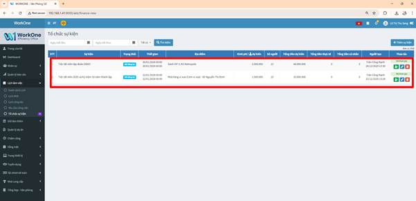 Màn hình Tổ chức sự kiện