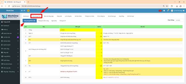 2. Tab tổng hợp giờ làm