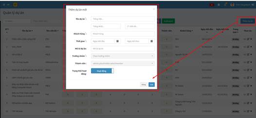 - Thêm dự án: Nhấn nút xanh dương ở góc phải để mở cửa sổ tạo dự án mới.