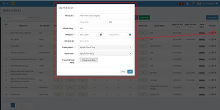 - Sửa (Bút chì): Cập nhật lại thời hạn hoặc thông tin dự án khi có thay đổi.